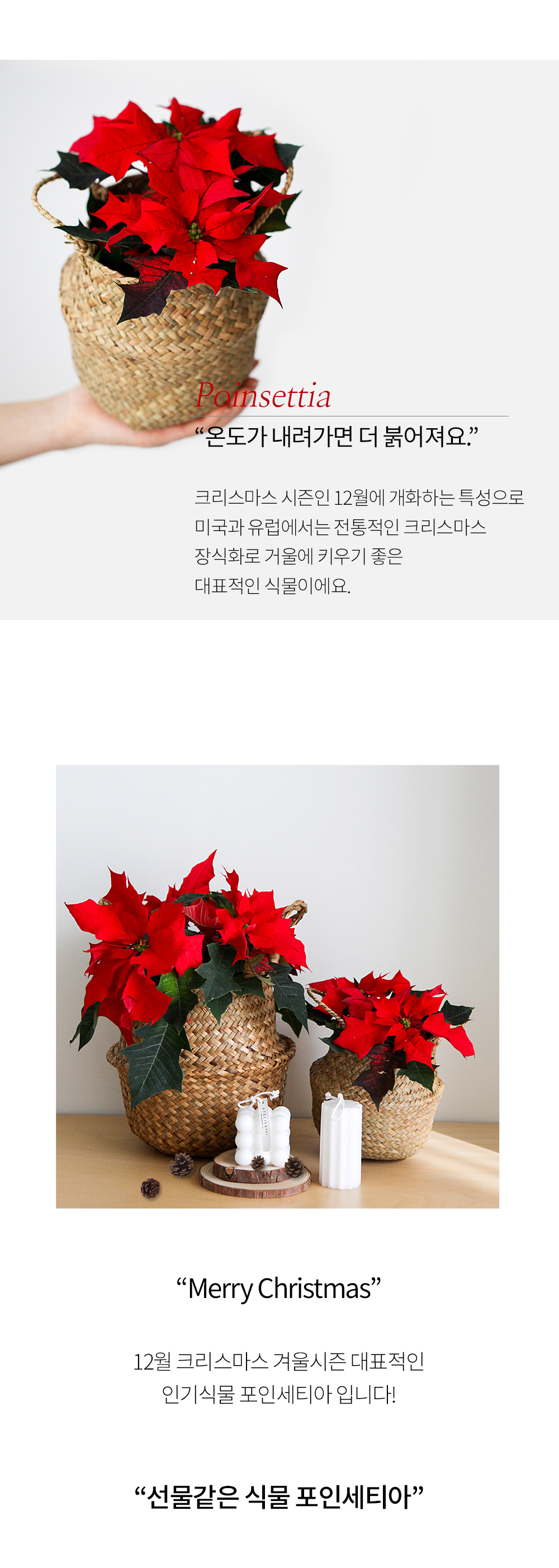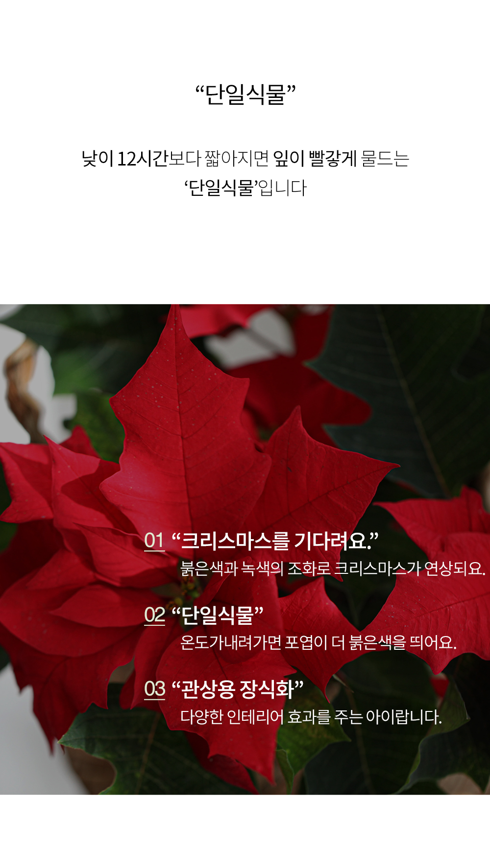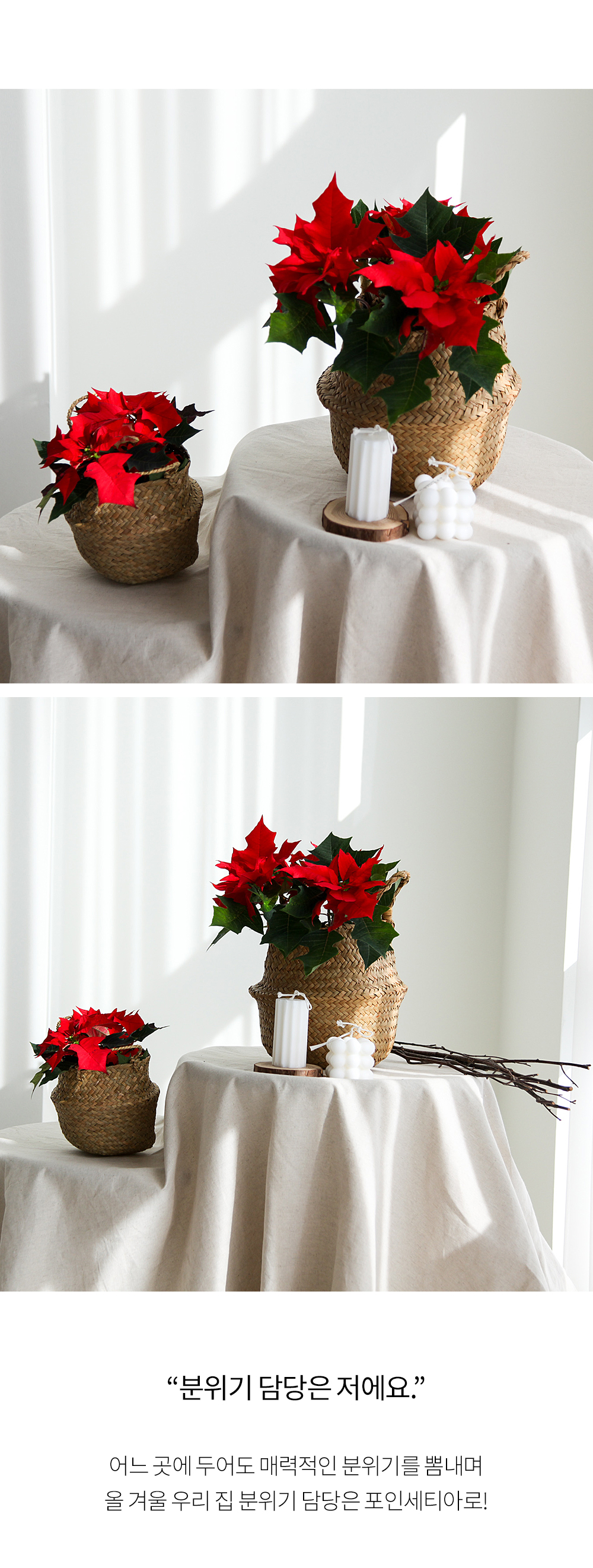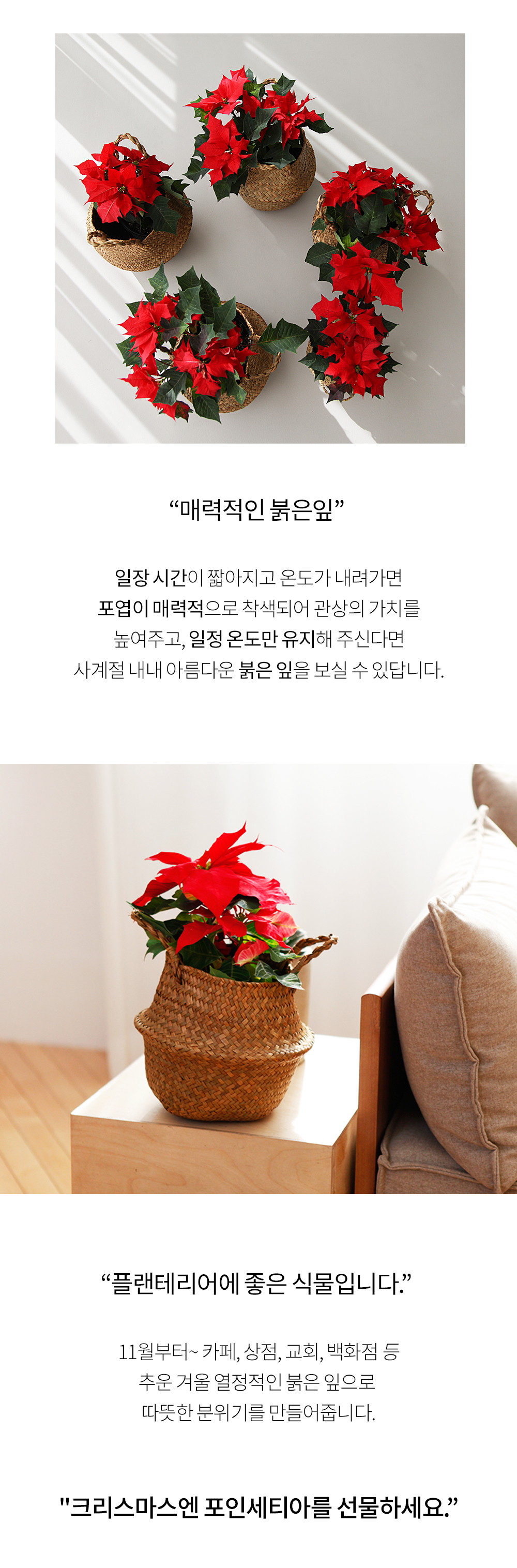 떠올리게 해요. 단일 식물인 포인 세티아는