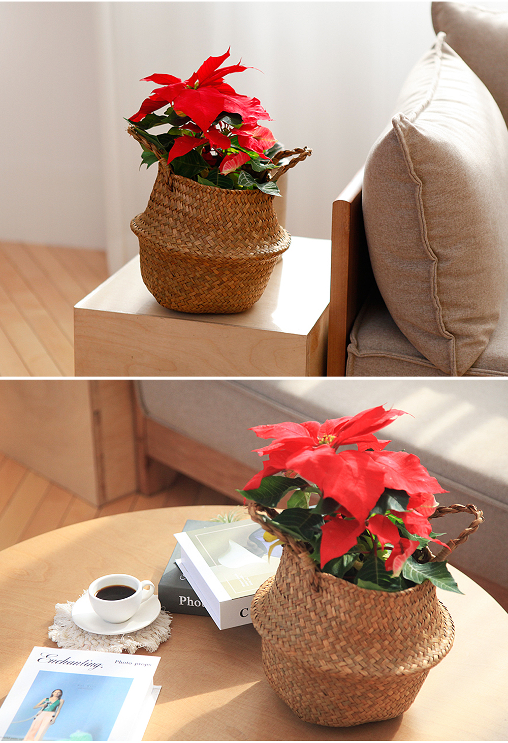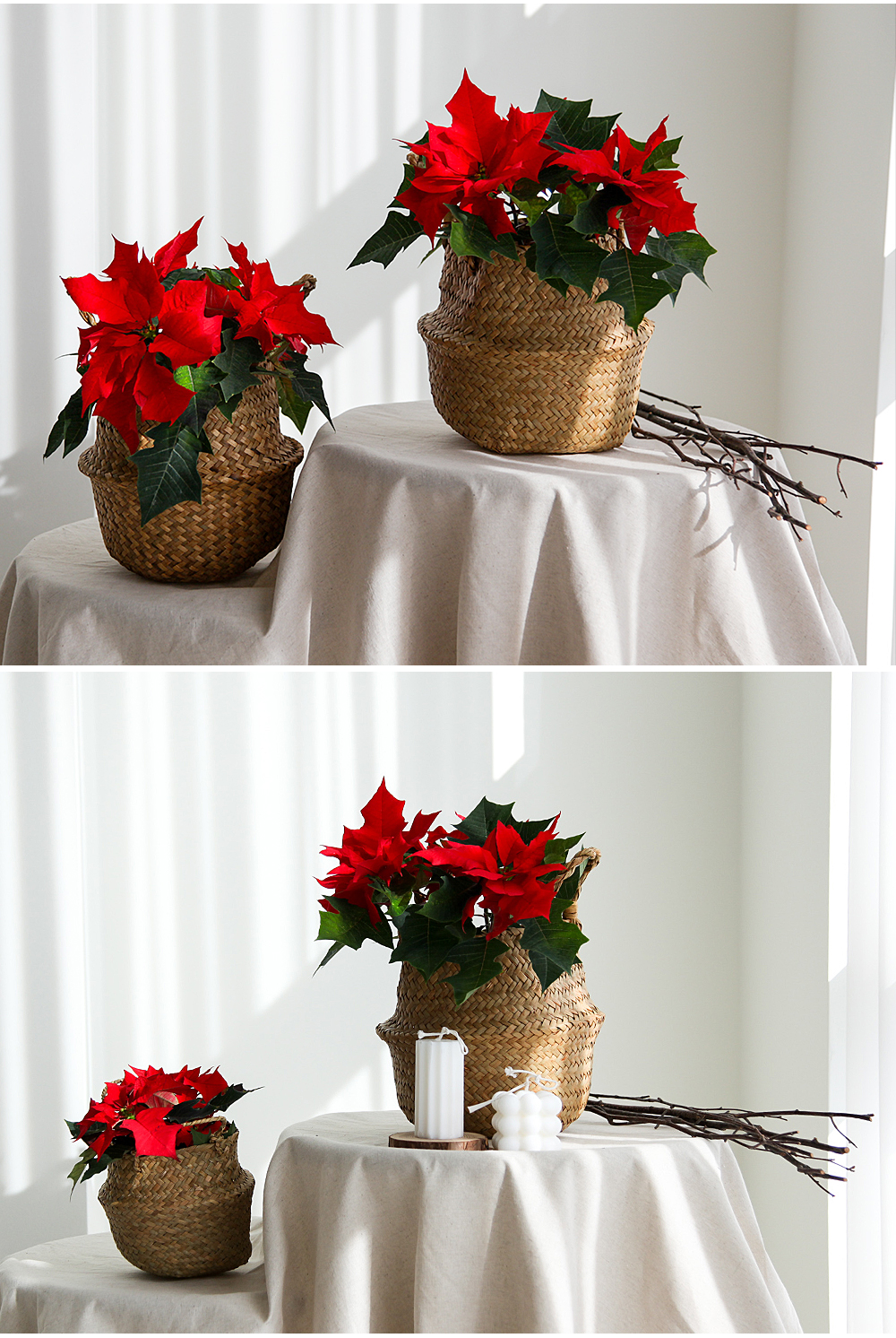-구성 : 라탄바구니(S)+포인세티아(중)+받침대