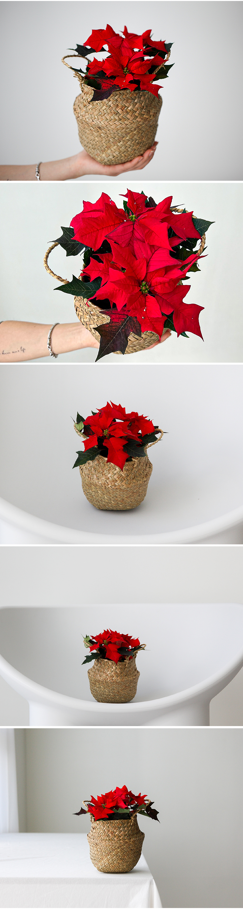 - 구성 : 미니라탄바구니+포인세티아(소)+받침대