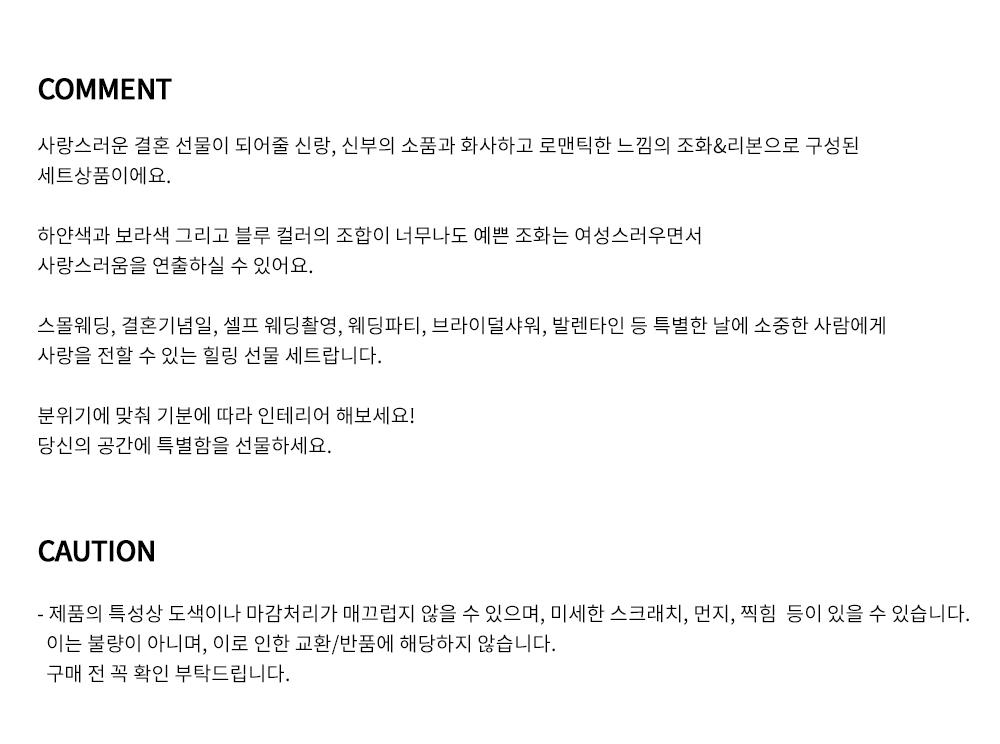 - 단순 변심에 의한 교환 및 환불이 불가하오니 주문시 신중하게 결정하시길 바랍니다.
